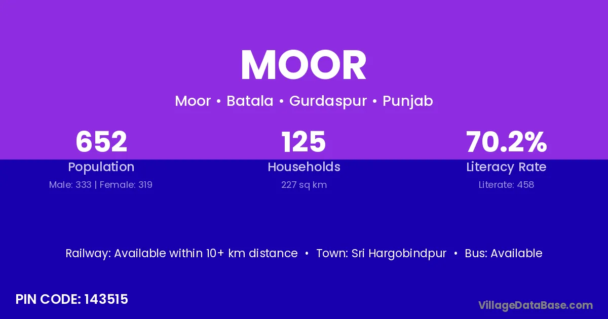 According to Census 2011 information, the village code of Moor village is 143515.