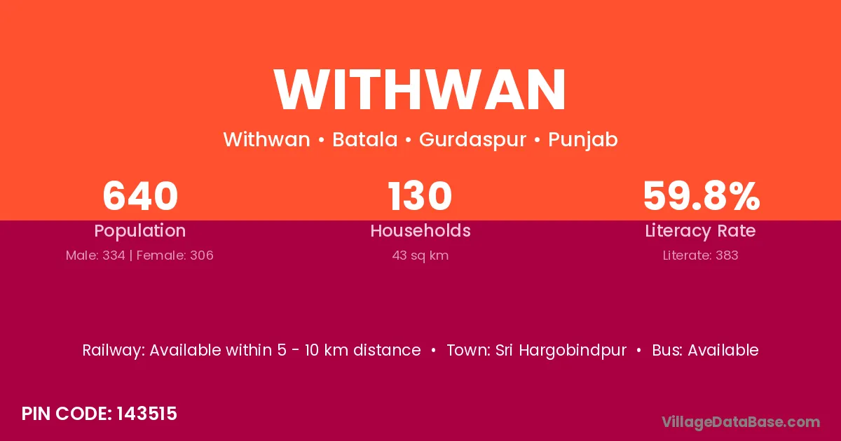 Withwan village has a total population of 640 people, of which 334 are males and 306 are females.