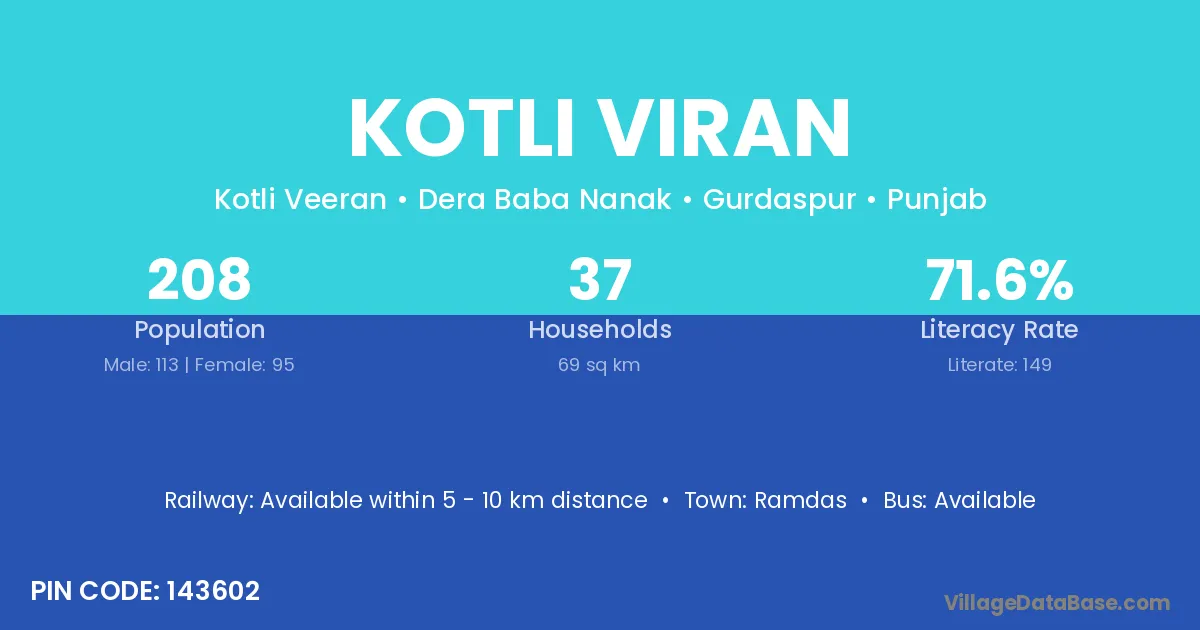 Ramdas is the nearest town to Kotli Viran village for major economic activities