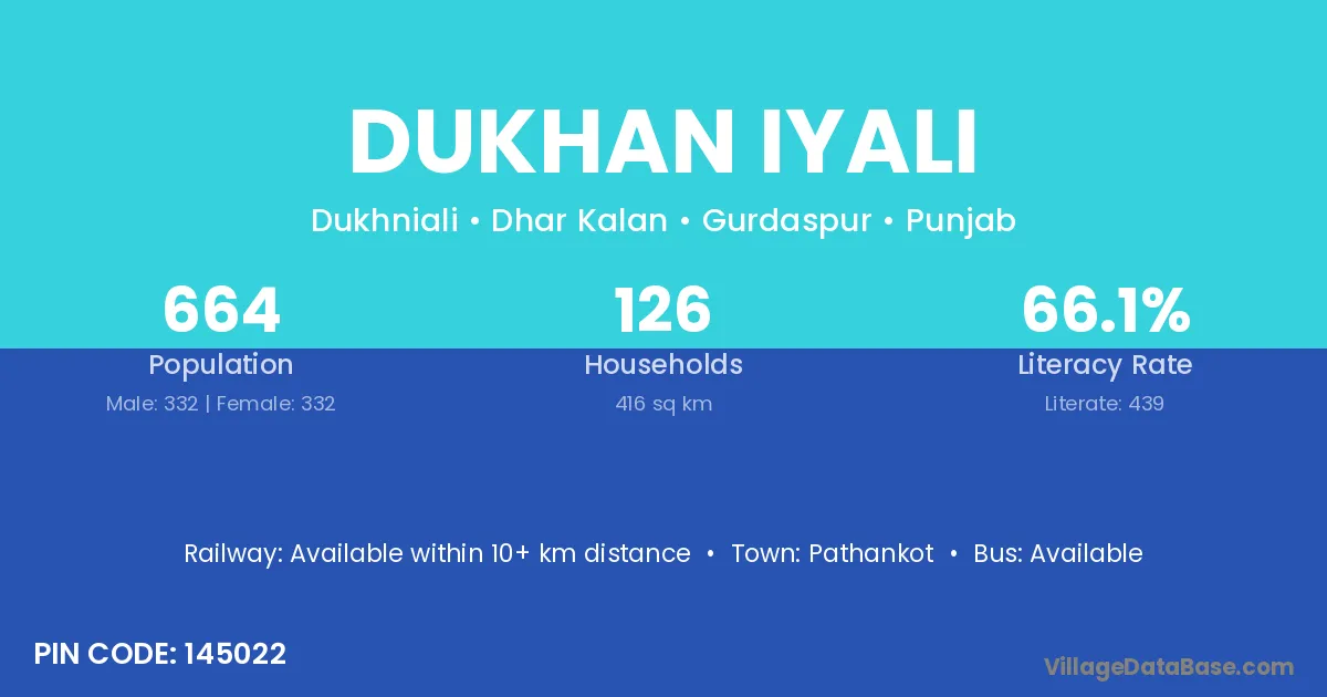 Pathankot is the nearest town to Dukhan Iyali village for major economic activities