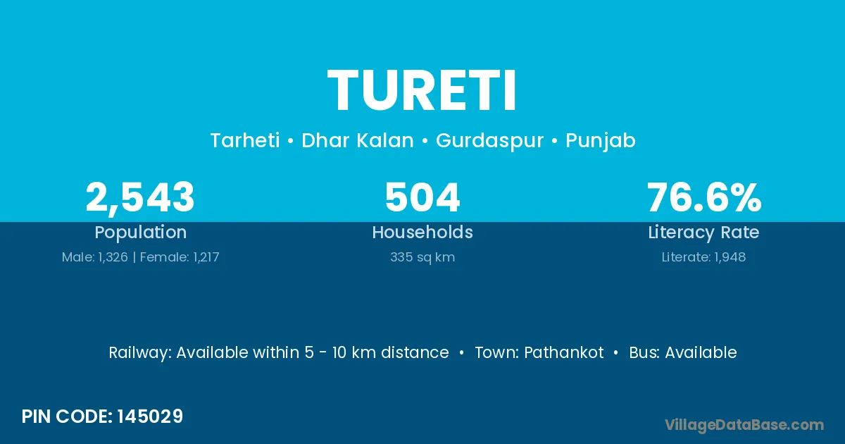 Pathankot is the nearest town to Tureti village for major economic activities