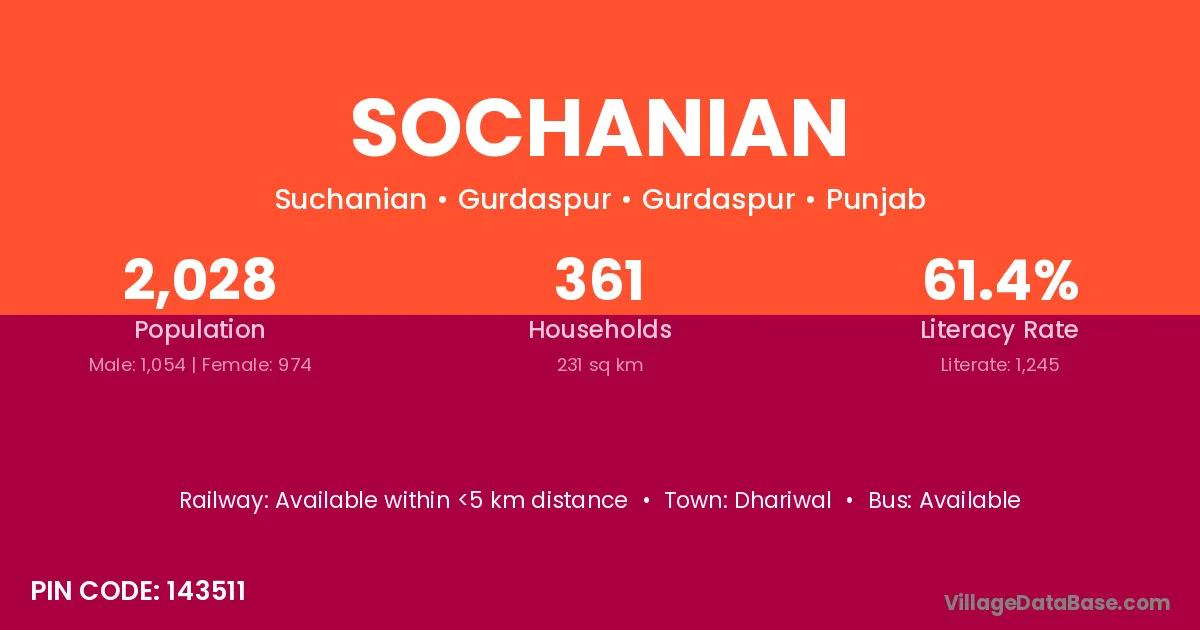 According to Census 2011 information, the village code of Sochanian village is 143511.