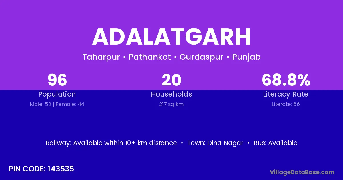 Dina Nagar is the nearest town to Adalatgarh village for major economic activities