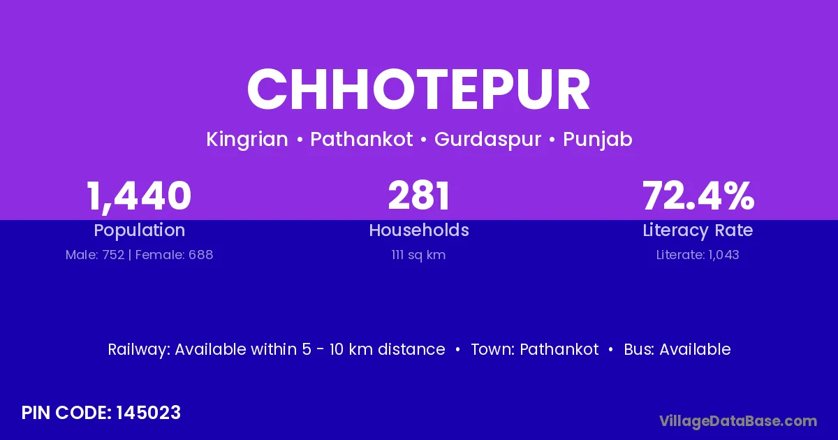 Pathankot is the nearest town to Chhotepur village for major economic activities