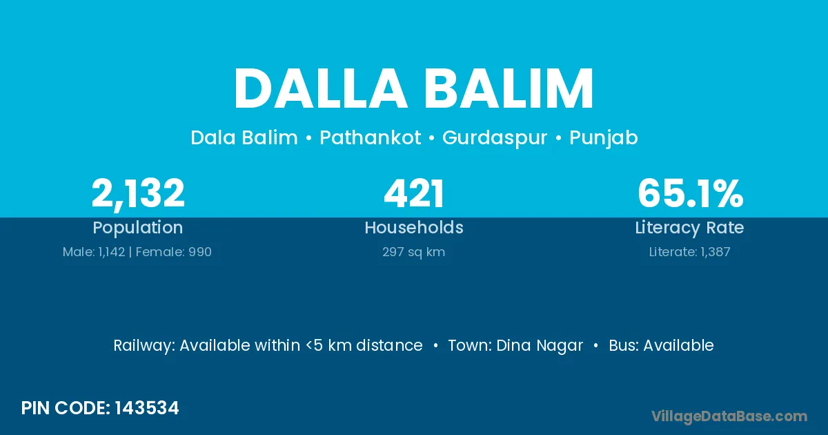 Dina Nagar is the nearest town to Dalla Balim village for major economic activities