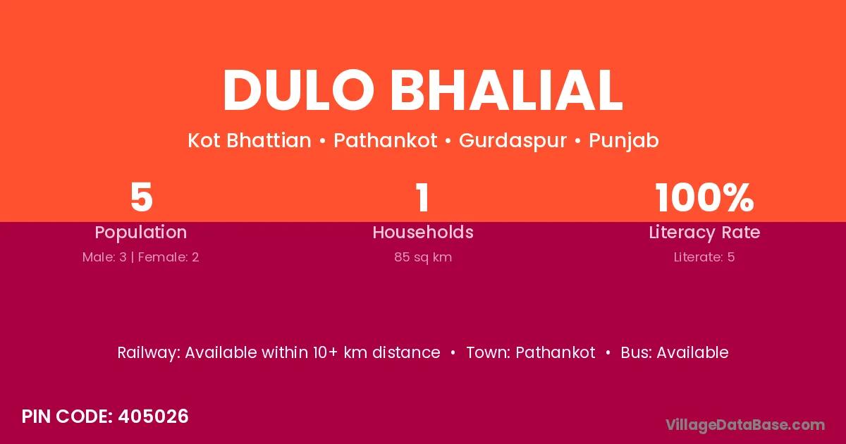 Dulo Bhalial village has a total population of 5 people, of which 3 are males and 2 are females.