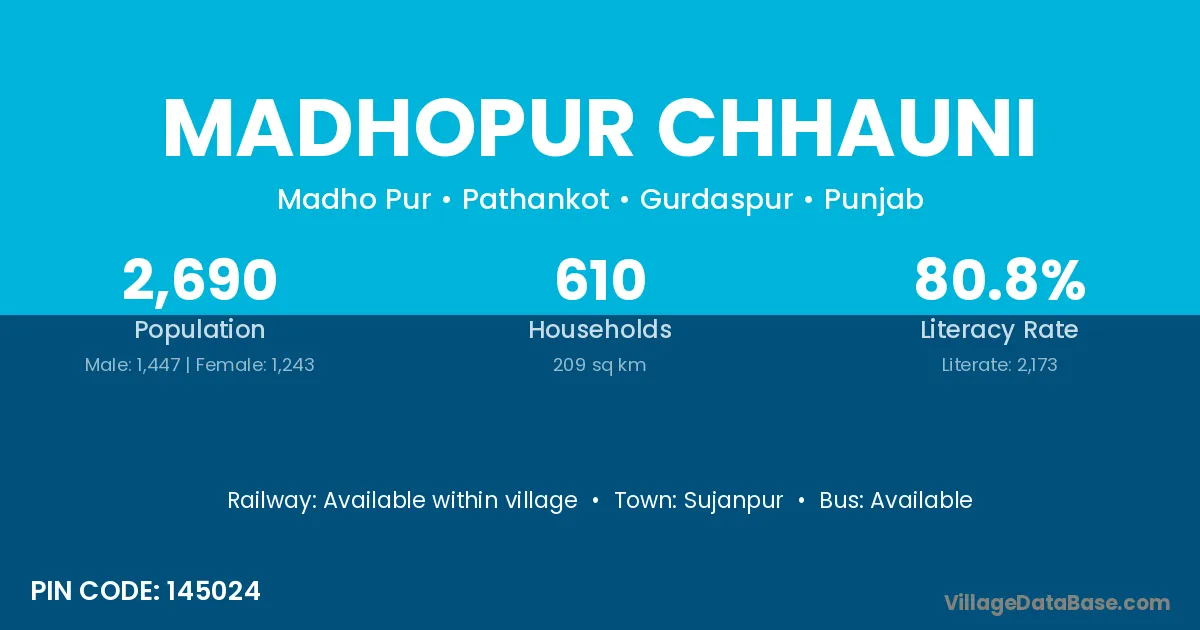 Sujanpur is the nearest town to Madhopur Chhauni village for major economic activities