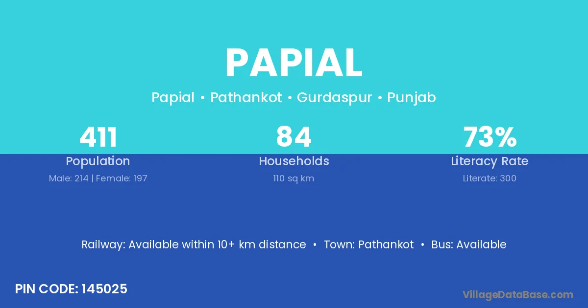 Papial village has a total population of 411 people, of which 214 are males and 197 are females.
