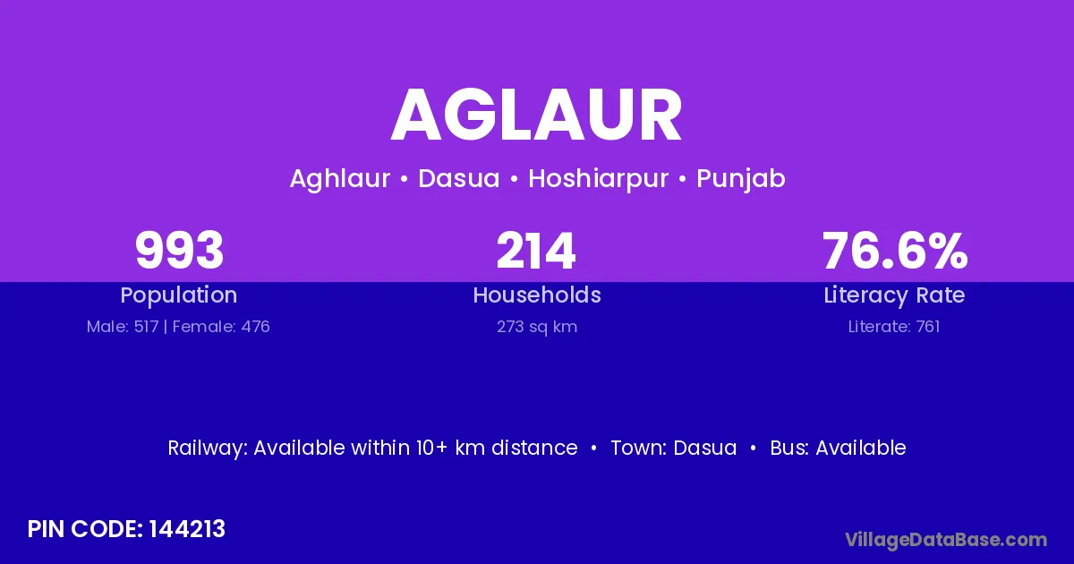 There are approximately 214 households in Aglaur village.