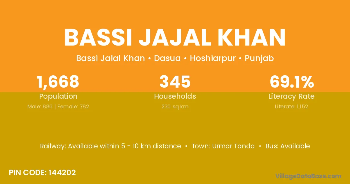 Urmar Tanda is the nearest town to Bassi Jajal Khan village for major economic activities