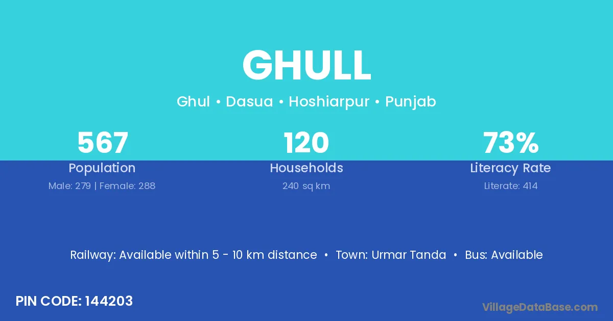 Urmar Tanda is the nearest town to Ghull village for major economic activities
