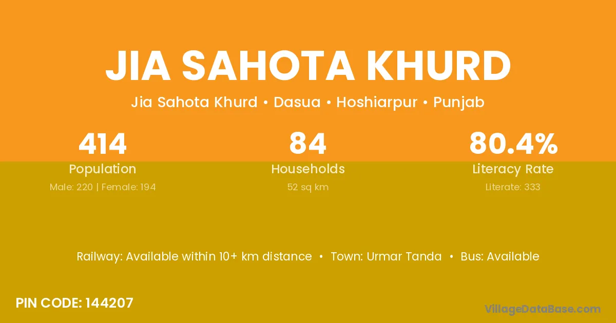 Urmar Tanda is the nearest town to Jia Sahota Khurd village for major economic activities