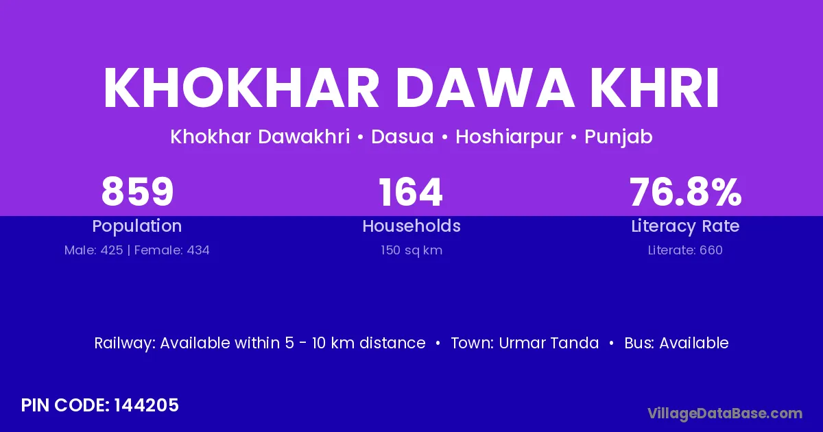 Urmar Tanda is the nearest town to Khokhar Dawa Khri village for major economic activities