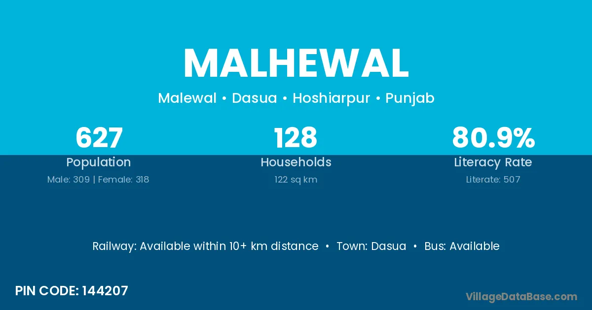 Dasua is the nearest town to Malhewal village for major economic activities