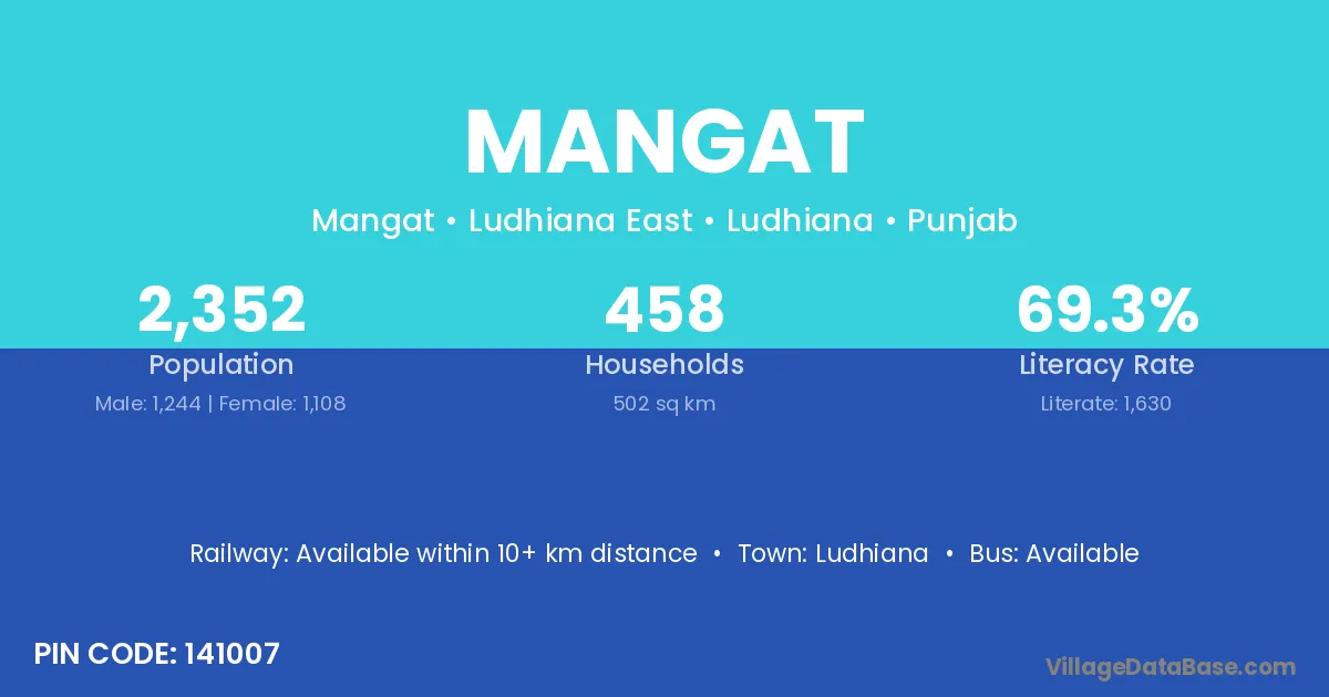 According to Census 2011 information, the village code of Mangat village is 144205.
