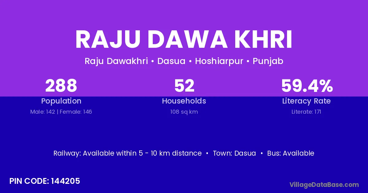 Dasua is the nearest town to Raju Dawa Khri village for major economic activities