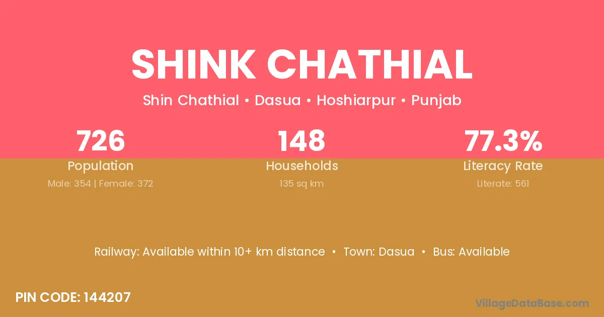 Shink Chathial village has a total population of 726 people, of which 354 are males and 372 are females.