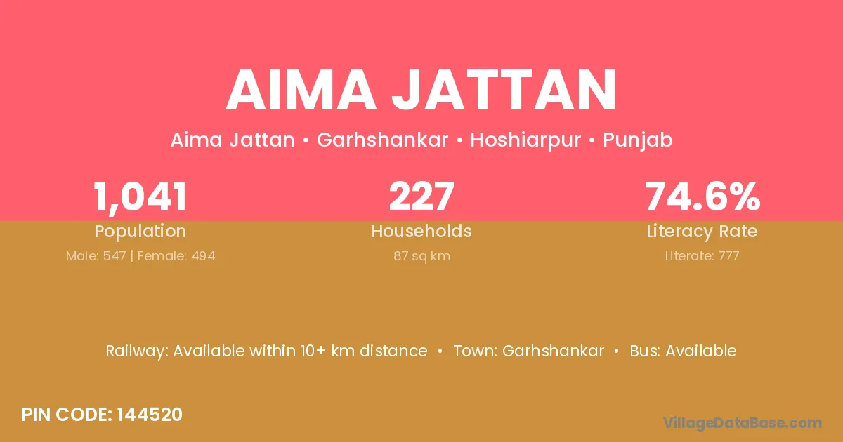 Garhshankar is the nearest town to Aima Jattan village for major economic activities