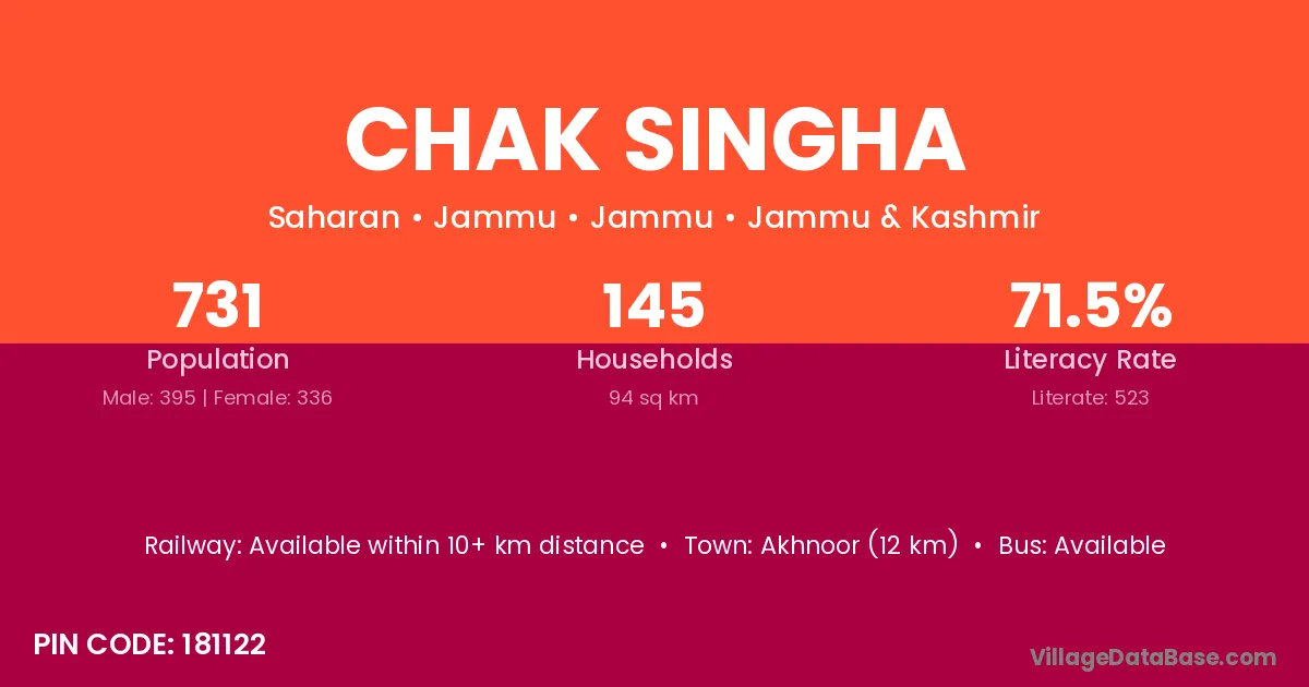 There are approximately 308 households in Chak Singha village.