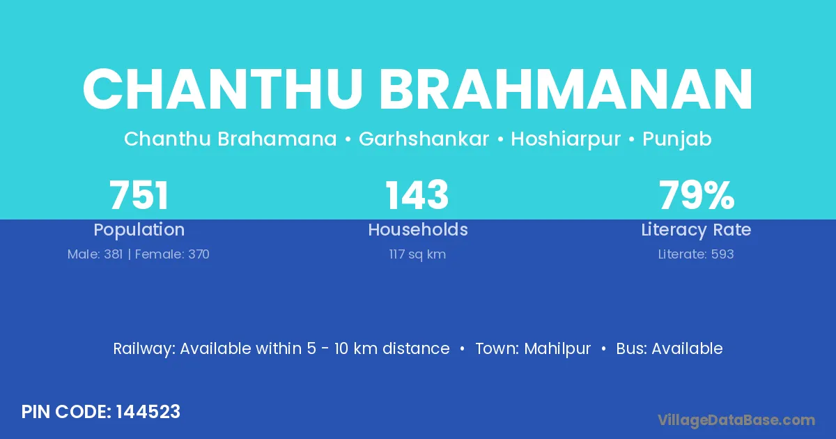 Chanthu Brahmanan village has a total population of 751 people, of which 381 are males and 370 are females.
