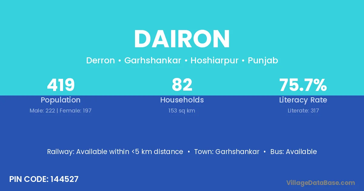 Garhshankar is the nearest town to Dairon village for major economic activities