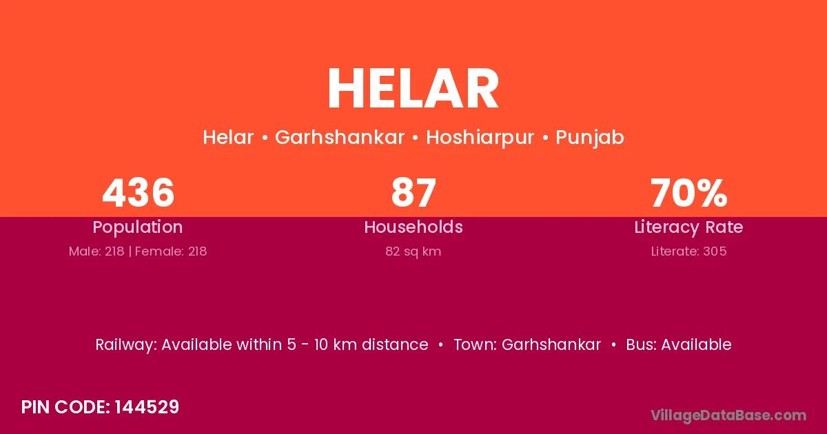 Garhshankar is the nearest town to Helar village for major economic activities