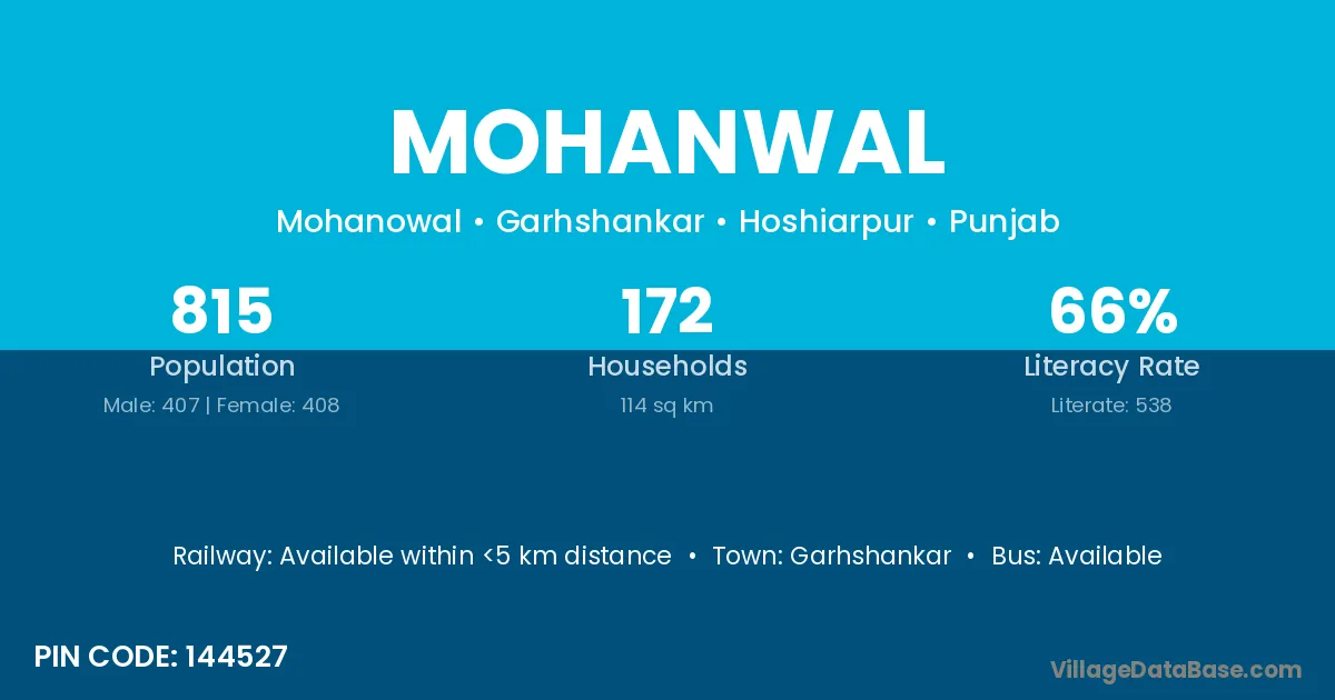 Garhshankar is the nearest town to Mohanwal village for major economic activities