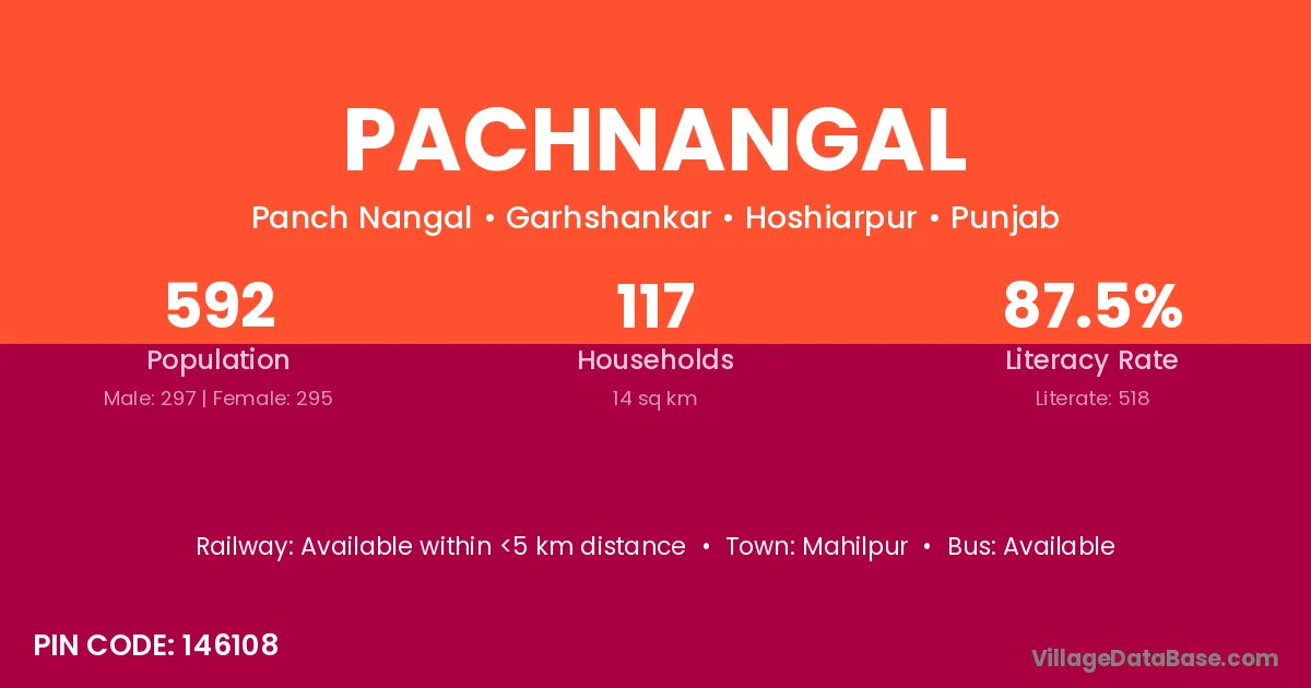 Pachnangal village has a total population of 592 people, of which 297 are males and 295 are females.