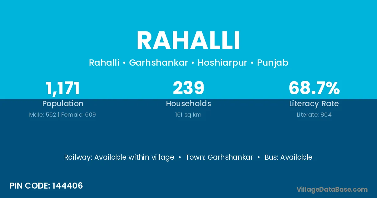 Rahalli village has a total population of 1,171 people, of which 562 are males and 609 are females.