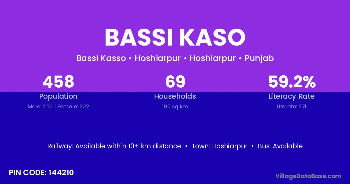 Hoshiarpur is the nearest town to Bassi Kaso village for major economic activities