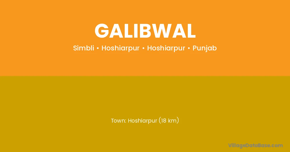 Hoshiarpur (18 km) is the nearest town to Galibwal village for major economic activities and is located approximately 18 km away.