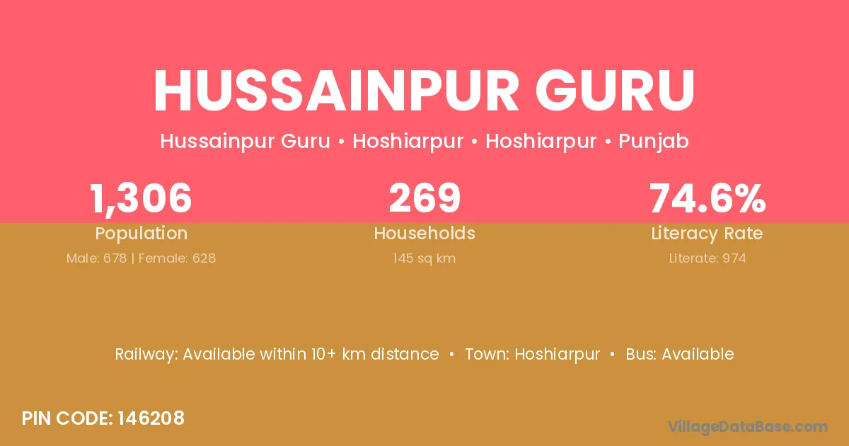 Hussainpur Guru village has a total population of 1,306 people, of which 678 are males and 628 are females.