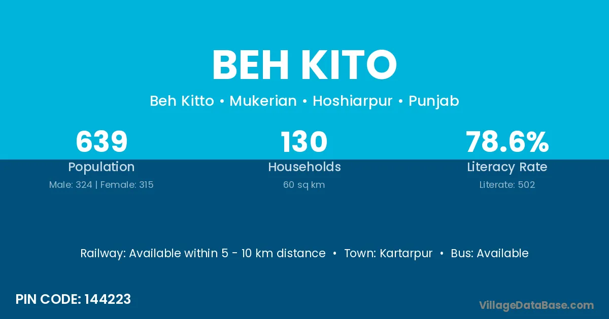 Kartarpur is the nearest town to Beh Kito village for major economic activities