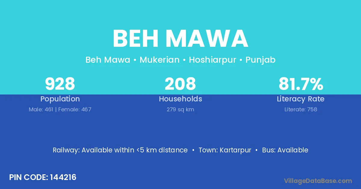 Kartarpur is the nearest town to Beh Mawa village for major economic activities