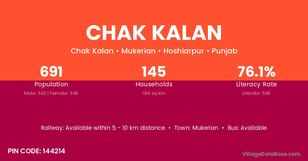 Mukerian is the nearest town to Chak Kalan village for major economic activities