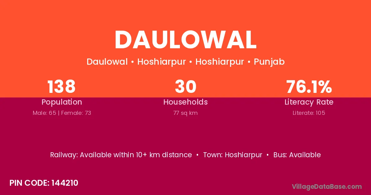 Mukerian is the nearest town to Daulowal village for major economic activities