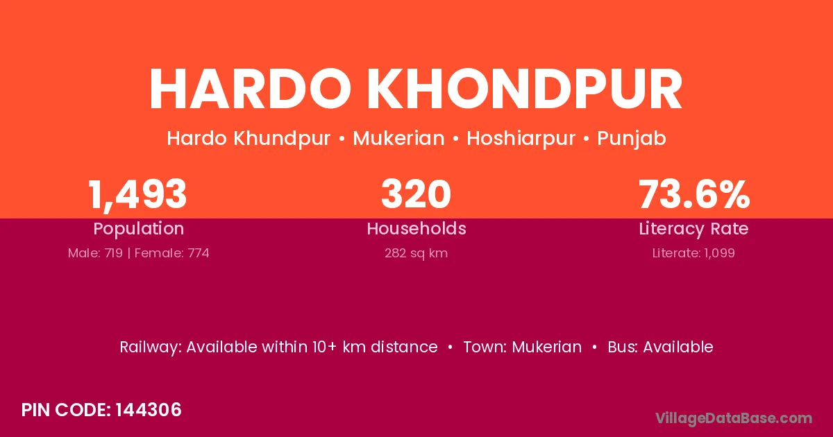 Mukerian is the nearest town to Hardo Khondpur village for major economic activities