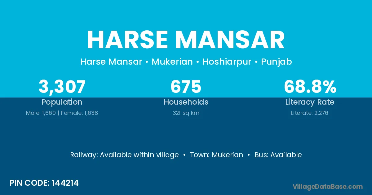 Mukerian is the nearest town to Harse Mansar village for major economic activities