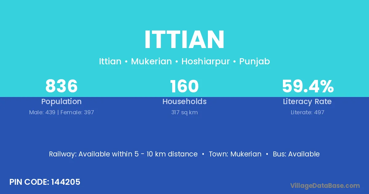Ittian village has a total population of 836 people, of which 439 are males and 397 are females.