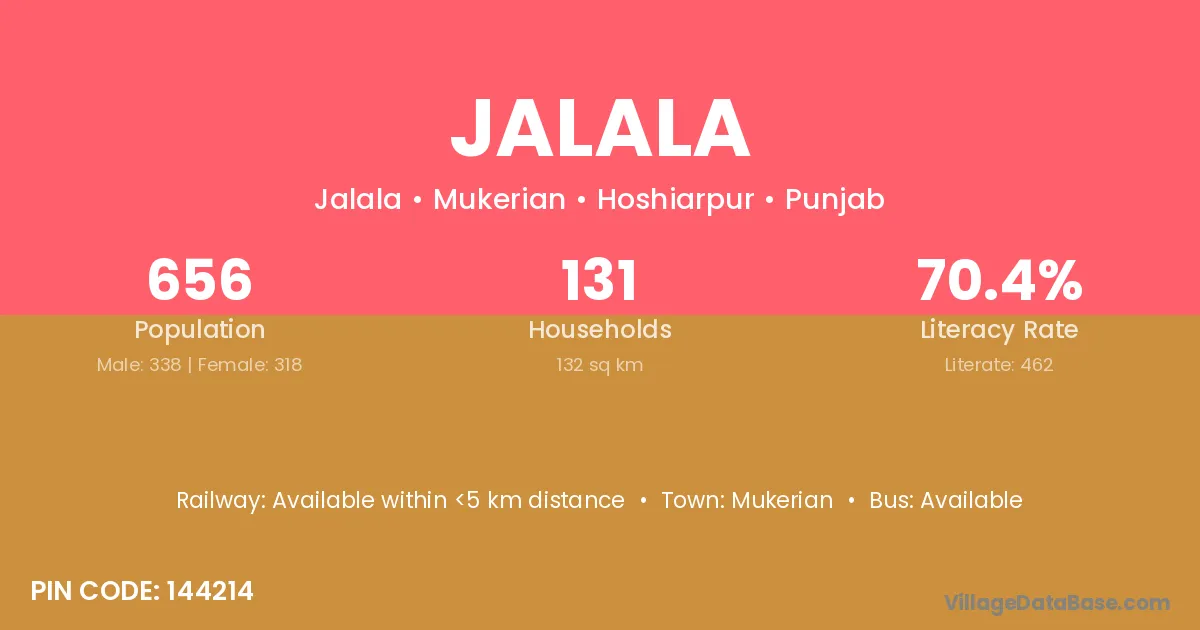 According to Census 2011 information, the village code of Jalala village is 144214.