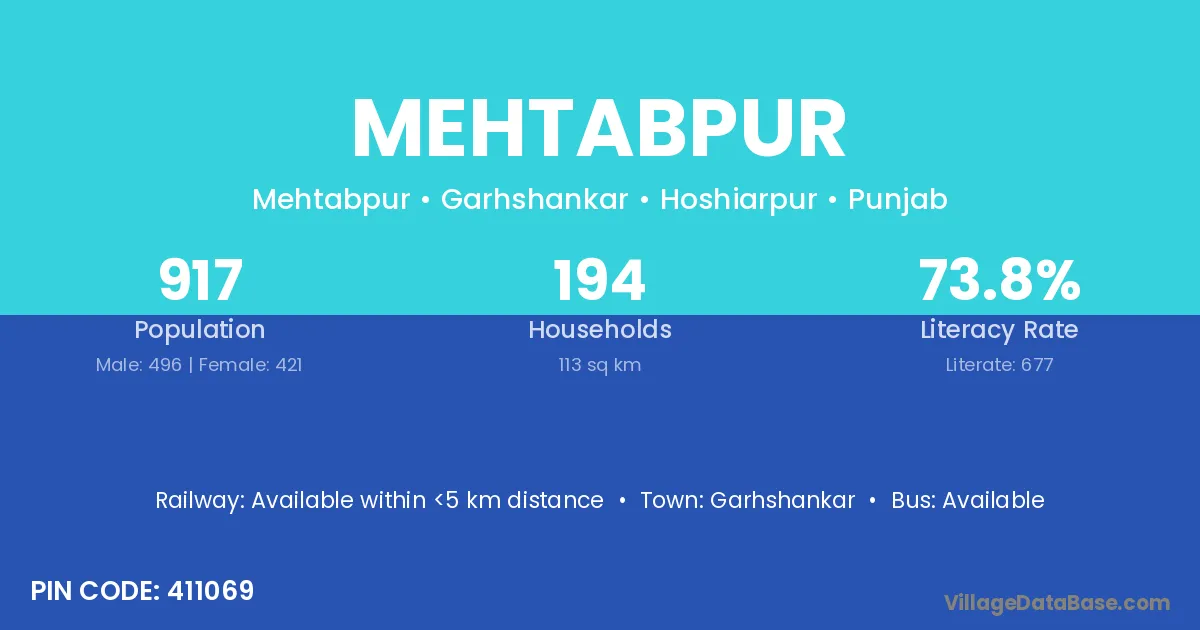 Mukerian is the nearest town to Mehtabpur village for major economic activities