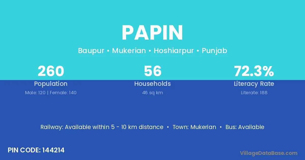 Mukerian is the nearest town to Papin village for major economic activities