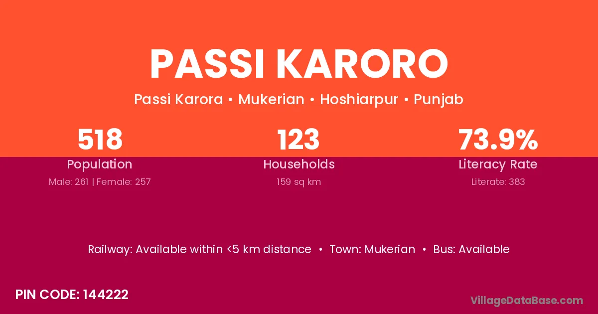 Mukerian is the nearest town to Passi Karoro village for major economic activities