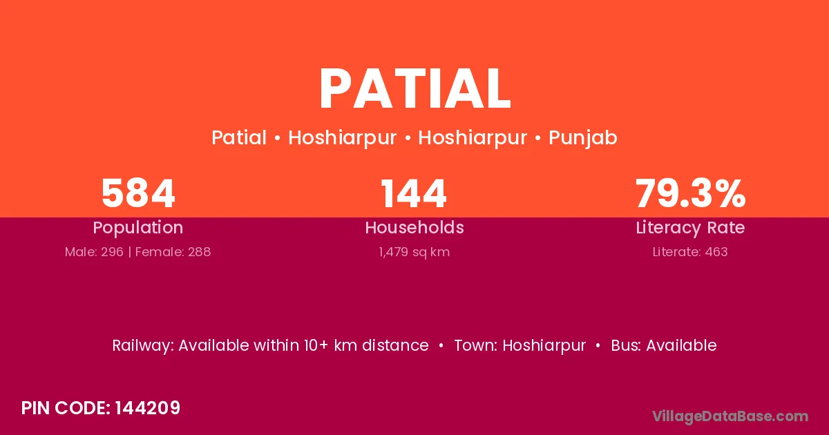 According to Census 2011 information, the village code of Patial village is 144214.