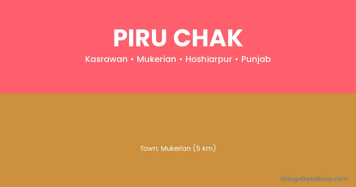 Mukerian (5 km) is the nearest town to Piru Chak village for major economic activities and is located approximately 5 km away.