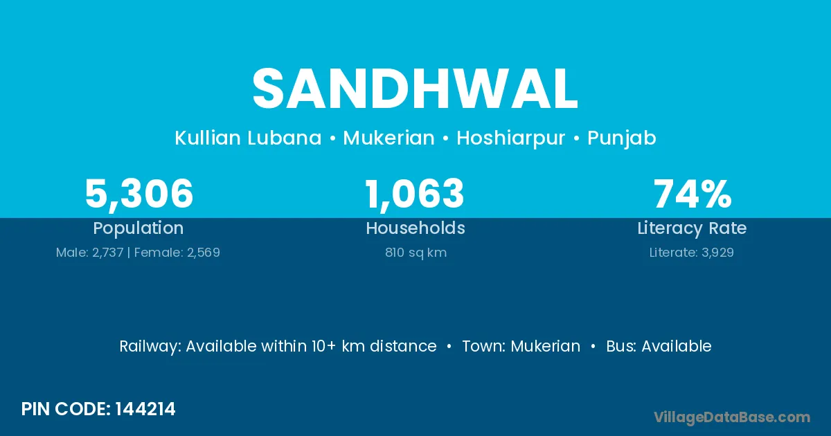 Mukerian is the nearest town to Sandhwal village for major economic activities