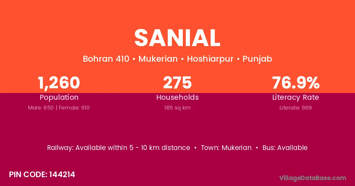 Mukerian is the nearest town to Sanial village for major economic activities