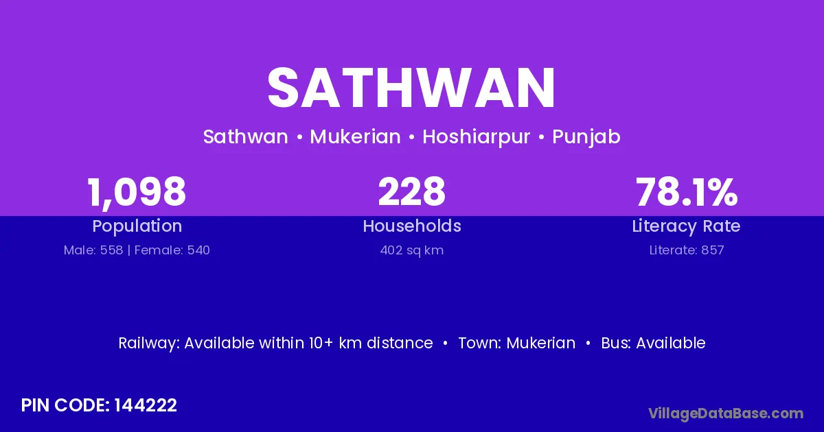 Mukerian is the nearest town to Sathwan village for major economic activities