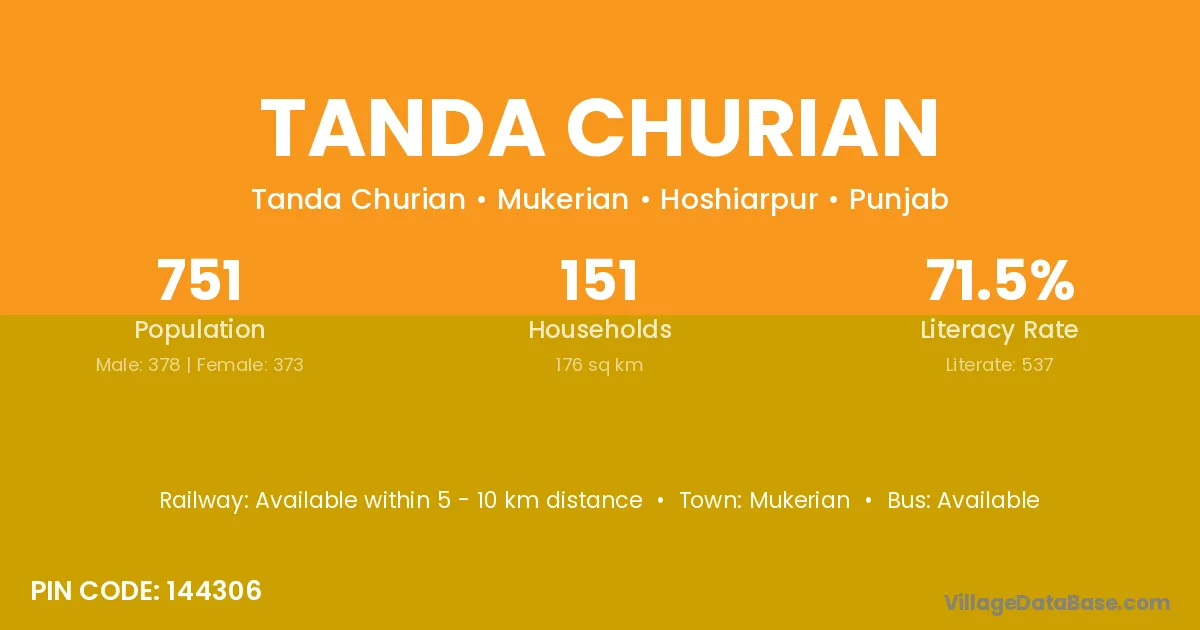 Mukerian is the nearest town to Tanda Churian village for major economic activities