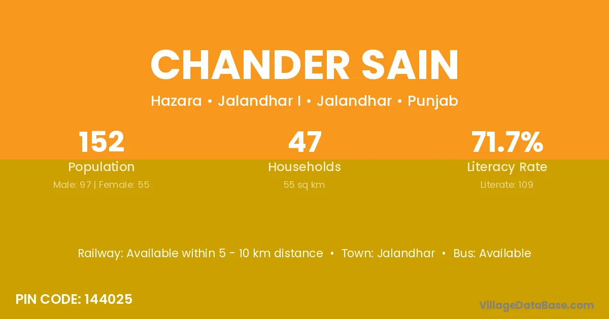 Jalandhar is the nearest town to Chander Sain village for major economic activities